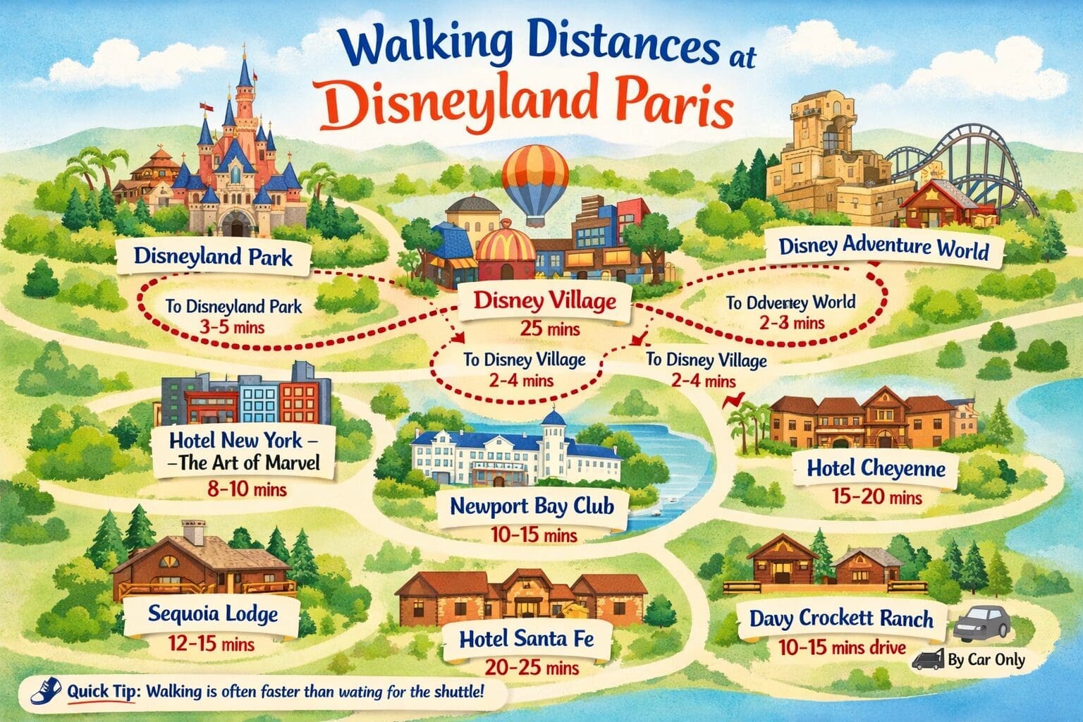 🗺️ Disneyland Paris Walking Distances & Travel Times (2026 Guide)